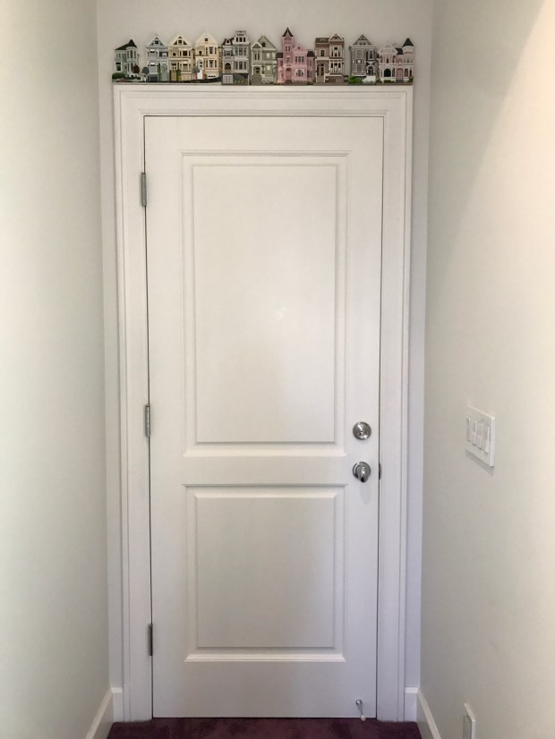I secured the houses to the top of my daughter’s door frame and Voila!